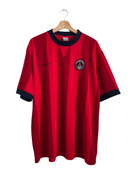 Original Paris Saint-Germain training shirt, corresponding to the 2006/2007 season. Made by Nike , this version stands out for its intense red base, decorated with vertical stripes in darker and lighter tones, creating a dynamic and elegant visual effect.